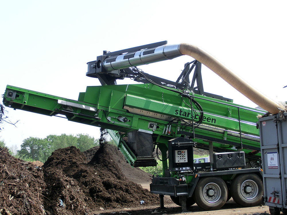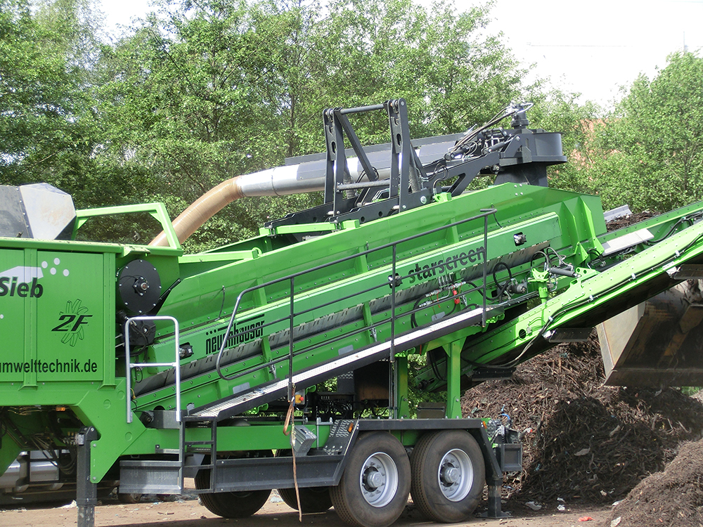 The Neuenhauser windshifter is used for the removal of ‘lights’ from oversize material such as compost, wood, aggregate, etc.